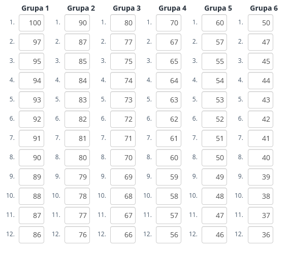 - Jeśli w danej kolejce jest mniej niż 10 uczestników, wszyscy grają systemem „każdy z każdym”, niezależnie od dotychczasowego podziału na grupy.