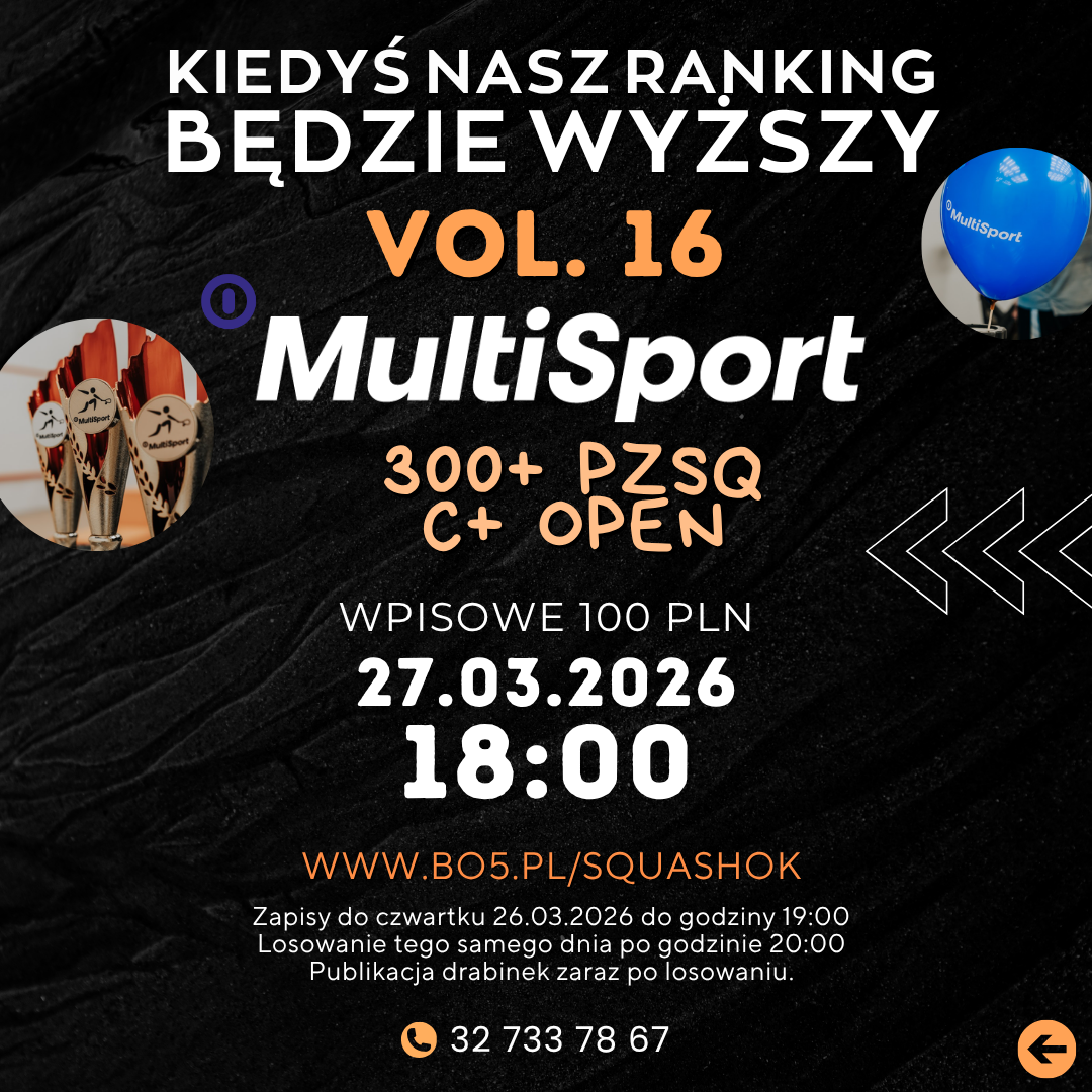 Turniej pod patronatem Polskiego Związku Squasha (PZSQ). Turniej (będzie) zgłoszony do kalendarza PZSQ jako turniej kategorii C+ Open.